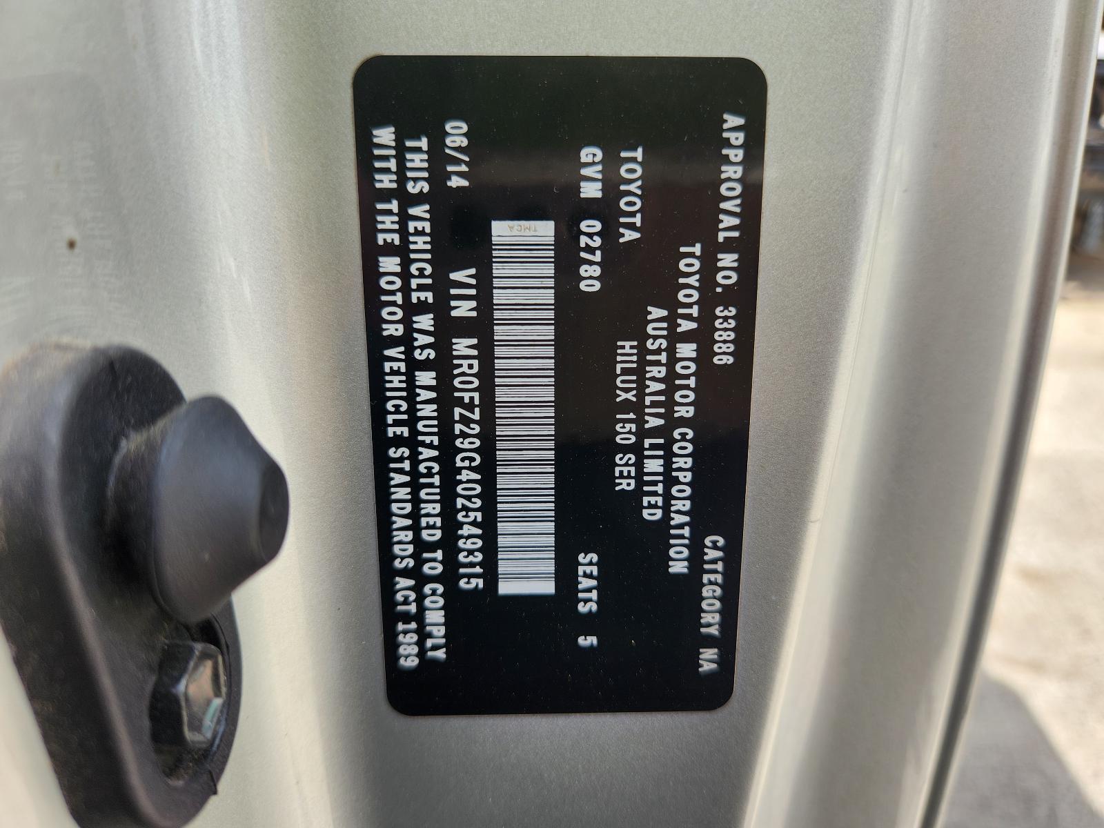 Ask our experience sales team about this Toyota Hilux 2014 part.